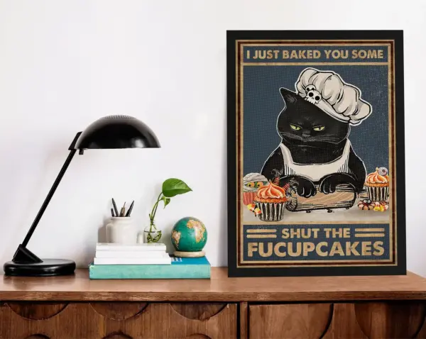 I Just Baked You Some Shut The Fucupcake Funny Cat Art Home Decor Wall Art Cat Poster Print Black Cat Art Baking Wall Decor