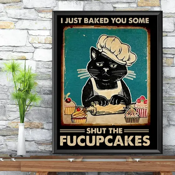 I Just Baked You Some Shut The Fucupcakes Cat Poster Vintage Cat Poster Black Cat Poster Cat Lover Gift
