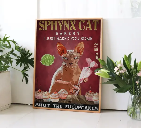I Just Baked You Some Shut The Fucupcakes Poster Cat Baking Wall Art Sphynx Cat Bakery Poster Best Gift For Sphynx Cat Lover