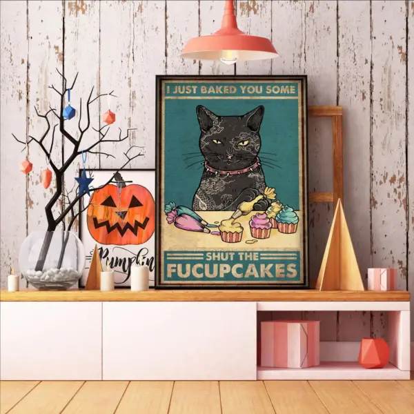 I Just Baked You Some Shut The Fucupcakes Poster Kitchen Decor Baker Gift Black Cat Print Cat Lover Gift Black Cat Art
