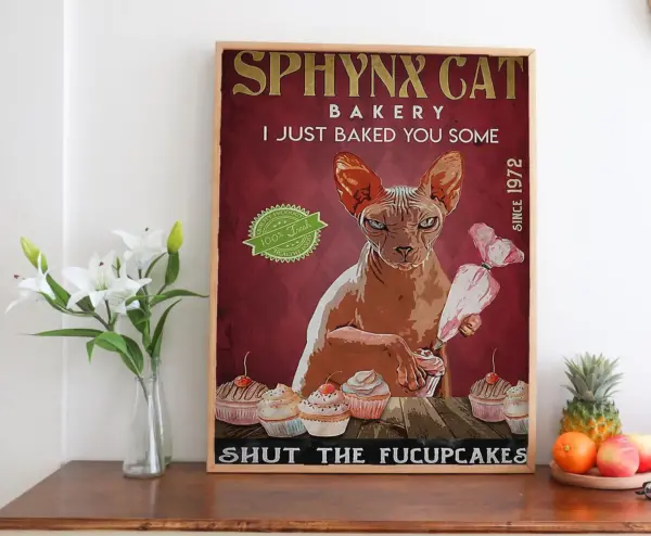 I Just Baked You Some Shut The Fucupcakes Poster Sphynx Cat Wall Art Cat Baking Poster Best Gift For Sphynx Cat Lover