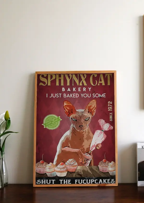 I Just Baked You Some Shut The Fucupcakes Poster Sphynx Cat Wall Art Sphynx Cat Bakery Poster Best Gift For Gift For Baker