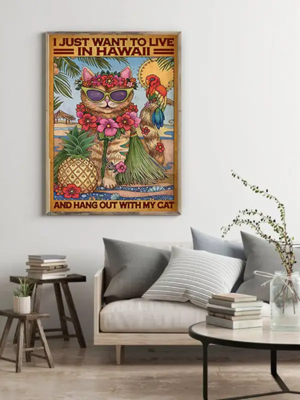I Just Want To Live In Hawaii Hang Out With My Cat Poster Cat Poster Cat Lovers Gift Cute Cat Decor Beach Poster Hawaii Lover Gift