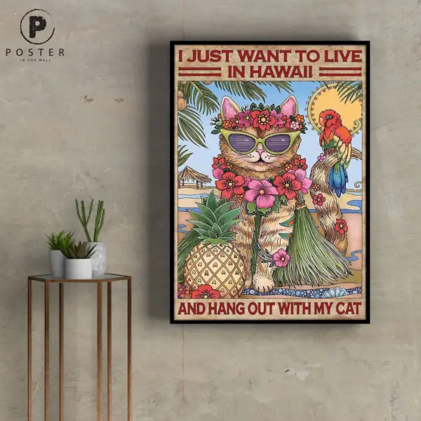 I Just Want To Live In Hawaii With My Cat Poster Hawaii Wall Art Wall Decor Hawaii Gift Cat Poster Cat Wall Decoration Cat Art Print