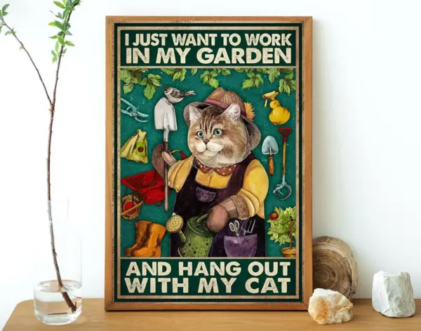 I Just Want To Work In My Garden And Hang Out With My Cat Poster Cat Lovers Idea Gift For Gardeners Vertical Poster No Framed