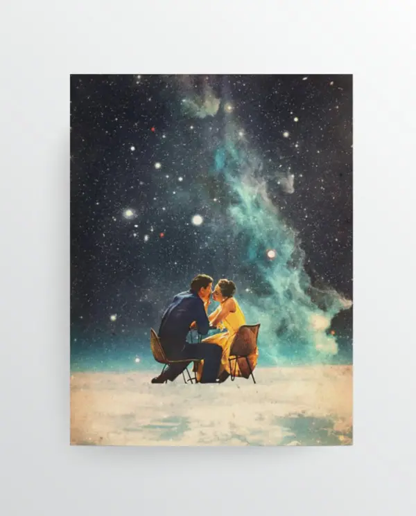Romantic space-themed poster perfect for a second date. Express your affection with this unique and memorable gift. High-quality print on durable paper.