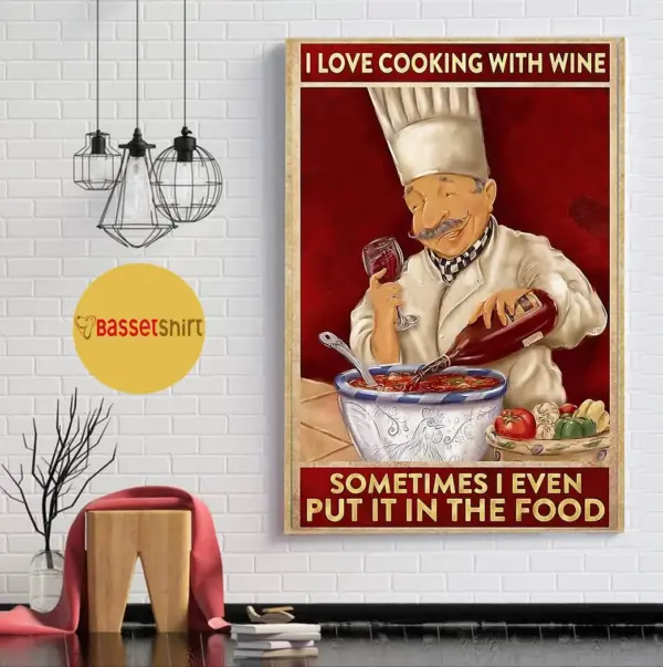 I Love To Cook With Wine Sometimes I Put It In The Food Poster