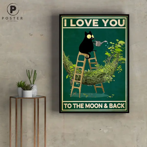 I Love You To The Moon And Back Cat Poster Print Wall Art Cat Lover Gift Wall Decoration Gardener Poster Hanging Poster Best Gift Ever