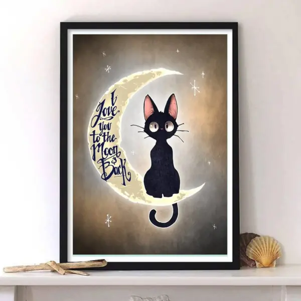 I Love You To The Moon And Black Vintage Style Poster Black Cat Poster Retro Poster Vintage Poster Moon Poster Cat Lover