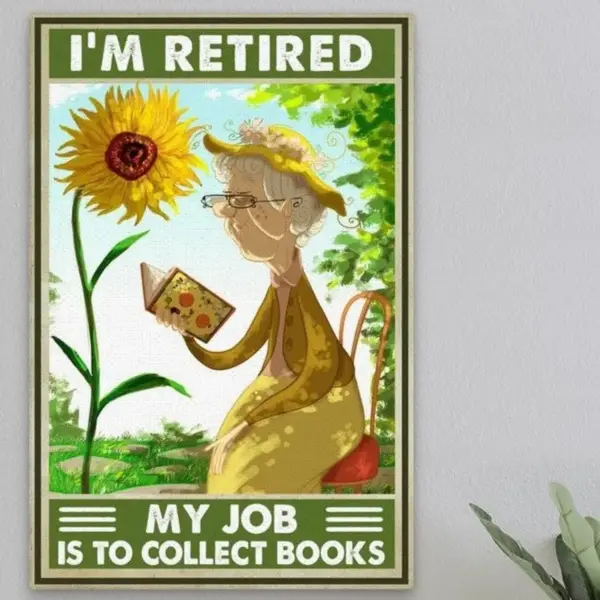 I M Retired My Job Is To Collect Book Poster No Frame Woman Love Reading Book Poster Bookworm Gift Vintage Book Wall Art Print 2