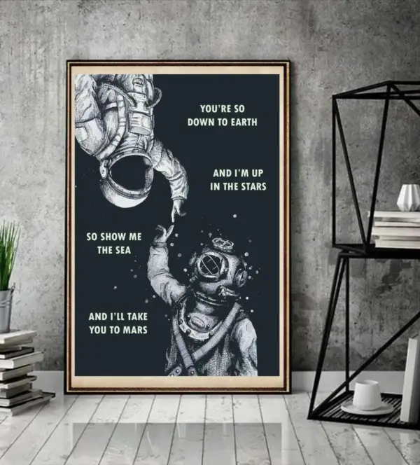 I M Up In The Stars Poster Astronaut And Diver Poster You Re So Down To Earth Poster So Show Me The Sea Poster And I Ll Take You To Mars