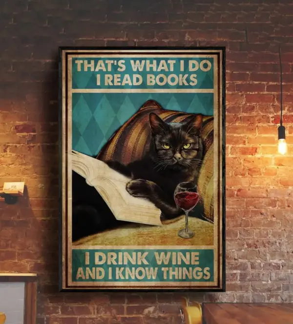 I Read Book I Drink Wine And I Know Things Poster Book Poster Wine Poster Cat Poster