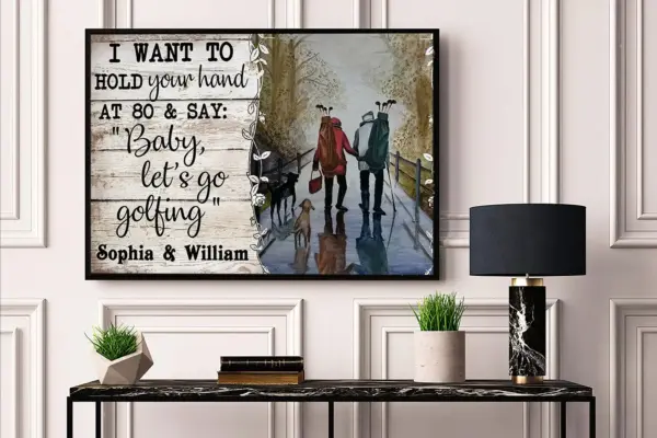 I Want To Hold Your Hand At 80 And Say Baby Let S Go Golfing Poster No Frame Personalized Poster Wife And Husband Poster Couple Poster