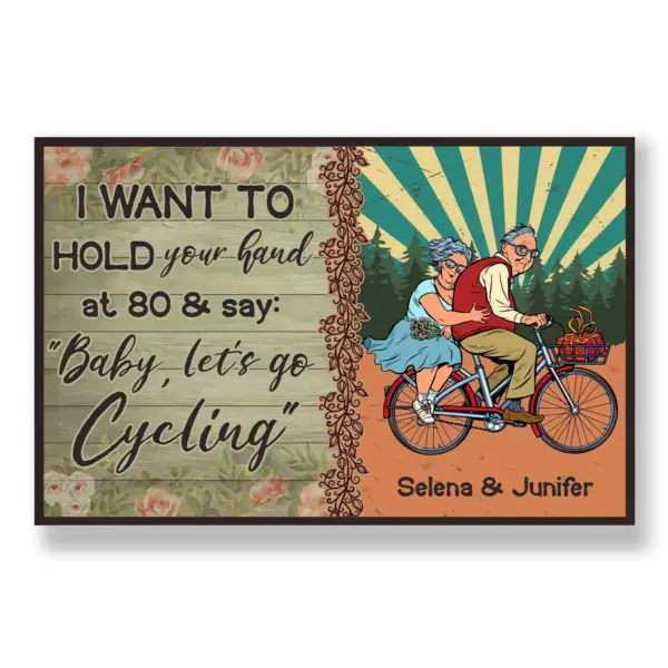 I Want To Your Hand At 80 Personalized Grandparent Cycling Poster Anniversary Gifts Old Couple Wall Art Cyclist Gifts Custom Name