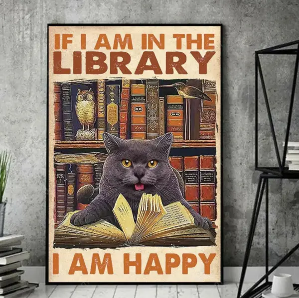 If I Am In The Library I Am Happy Poster No Frame Cat Reading Book Funny Cat Poster Cat Lover Gift Book Lover Vintage Poster 2