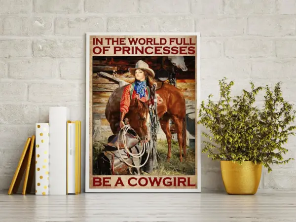 In A World Fulled Of Princesses Be A Cowgirl Vintage Poster Cowgirl Poster Horse Girl Poster