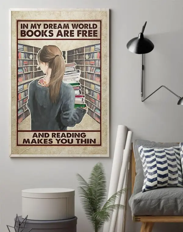 In My Dream World Books Are Free And Reading Makes You Thin Art Girl Loves Book Print Love Reading Books Reading Lovers Gift Books Art