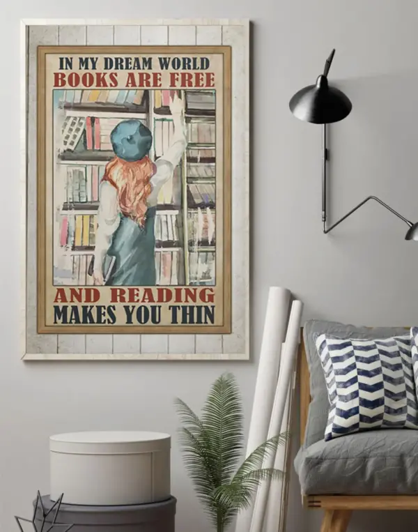In My Dream World Books Are Free And Reading Makes You Thin Poster Gift For Book Nerd