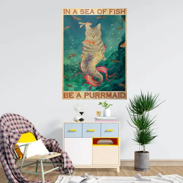 In Seof Fish Be Purrmaid Poster Framed Matte Canvas