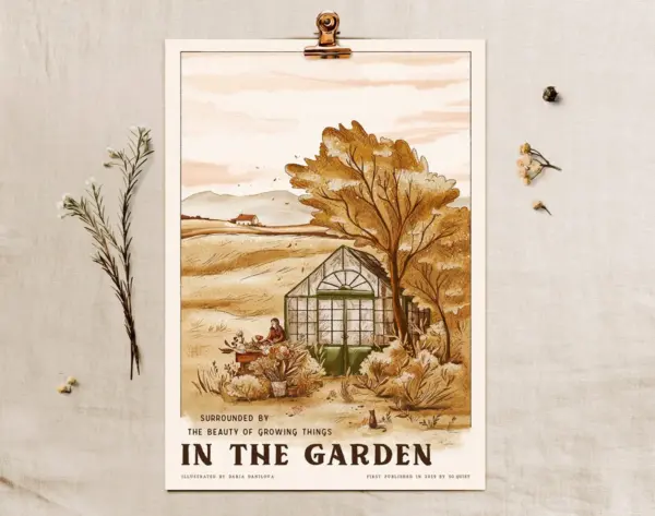 In The Garden Art Print Illustrated Print Retro Poster Plant Lover Gift Greenhouse Garden Poster Vintage Poster