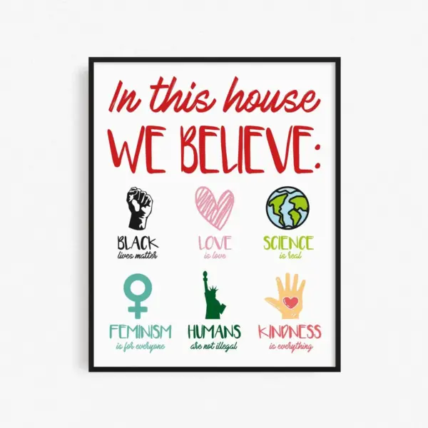 In This House We Believe Poster Civil Rights Poster Housewarming Poster Blm Print Feminism Print Lgbt Pride Print Unframed Poster Home Decor