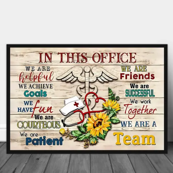 In This Office We Are Helpful We Are A Team Nurse Life Poster Prints Nurse Sunflower Wall Art Unframed Poster Nurses Crew Poster Wall Decor