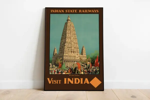 India Vintage Travel Poster Bodh Gaya Wall Art Prints Canvas Print Wall Art Framed Art Prints Poster Vintage Hanger Framed Print