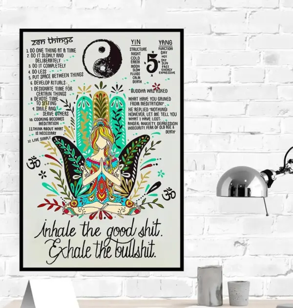 Inhale The Good Shit Exhale The Bullshit Poster No Frame Namaste Yoga Girl Poster Yoga Lovers Gift Hippie Girl Vintage Wall Art 14