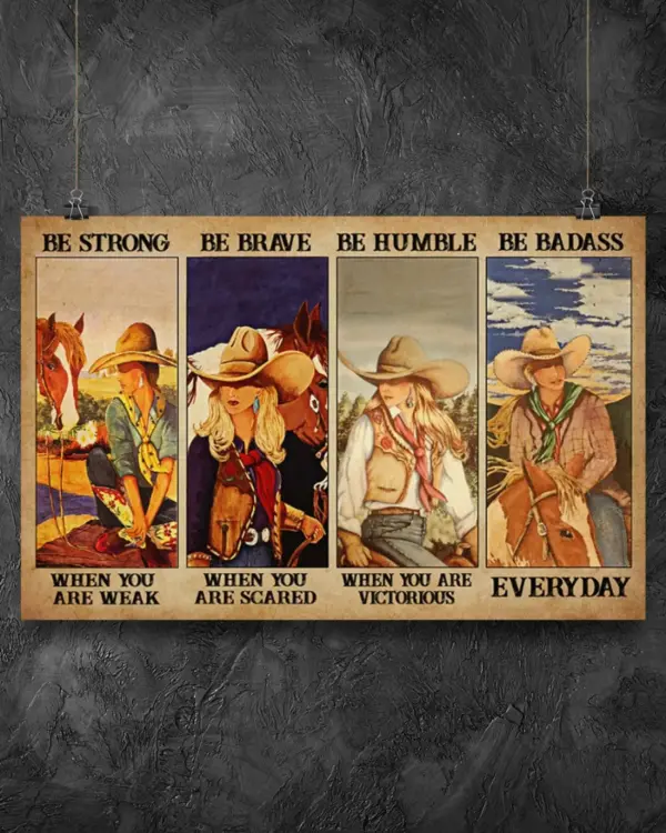 Inspirational Cowgirl Poster Be Strong Be Brave Be Humble Be Badass Motivational Cowgirl Wall Hanging Cowgirl Gift Idea Western Art Print
