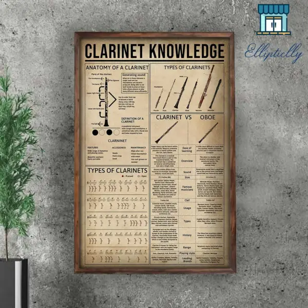 Instruments Poster Clarinet Poster Clarinet Knowledge Music Wall Art Home Decor Poster Print
