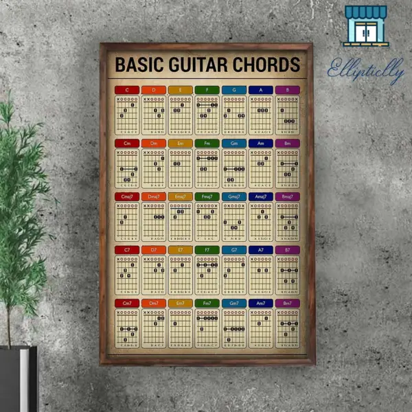 Instruments Poster Guitar Guitarist Basic Guitar Chords Cheat Sheet Music Wall Art Home Decor Poster Print