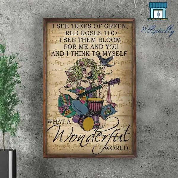 Instruments Poster Guitar Guitarist What A Wonderful World Guitar Hippie Music Wall Art Home Decor Poster Print