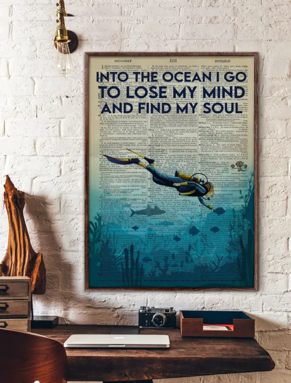 Into The Ocean I Go To Lose My Mind And Find My Soul Poster Art Print Best Gift Ever Home Decor Poster Scuba Poster Travel Poster