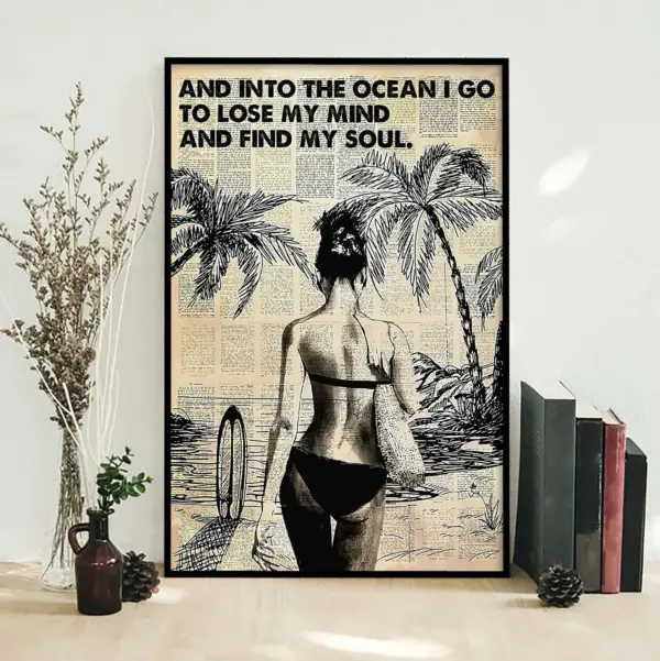 Into The Ocean I Go To Lose My Mind And Find My Soul Poster Surfing Girl Poster Surfing Lovers Poster Home Decor Wall Art 1812