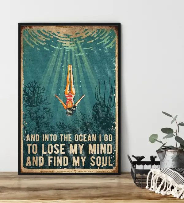 Into The Ocean I Go To Lose My Mind And Find My Soul Poster Swimming Poster Ocean Lovers Poster Best Gifts Ever Home Decor 1407
