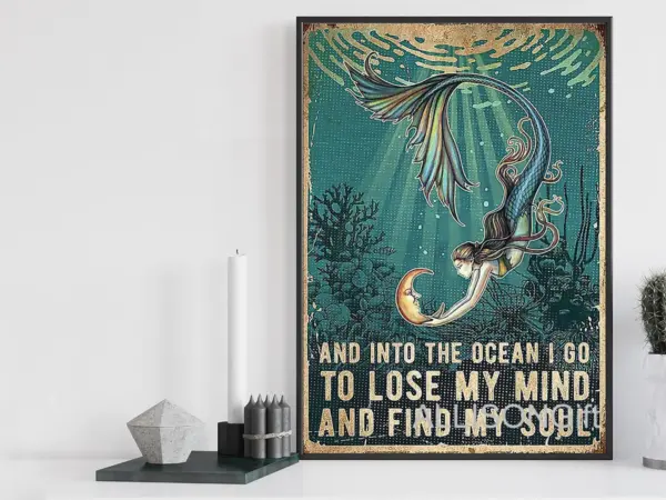 Into The Ocean Mermaid Vertical Poster Find My Soul Poster Ideal Gift Wall Art Home Decor Art Print Home Decor Gifts Wall Decor Poster