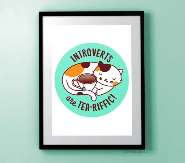 Introvert Cat Art Print Introvert Art Print Office Wall Art Cat Lover Gift Tea Lover Gift Circle Print Calico Cat Owner Pun Art
