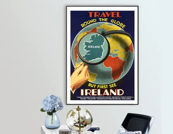 Ireland Travel Round The Globe Travel Poster Poster Paper Sticker Or Canvas Print Gift Idea Christmas Gift