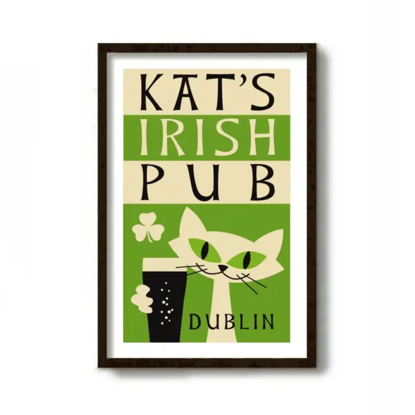 Irish Pub Sign Shamrock Decor Cat Lover Gift Cat Print Beer Lover Cat Dad Gift Pilsner Glass Beer Poster Bar Sign