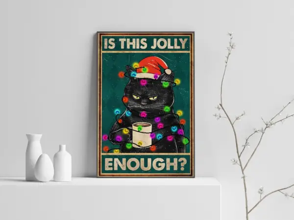 Is This Jolly Enough Poster Christmas Cat Poster Canvas Art Black Cat Print Kitty Biscuits Poster Christmas Wall Art Signs For Home