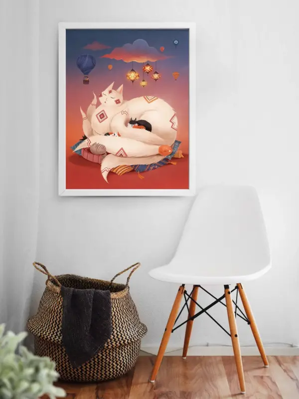 Istanbul Wall Art Studio Ghibli Print Fantasy Cat Decor Turkish Cat Art Air Balloon Print Whimsical Decor Nursery Poster
