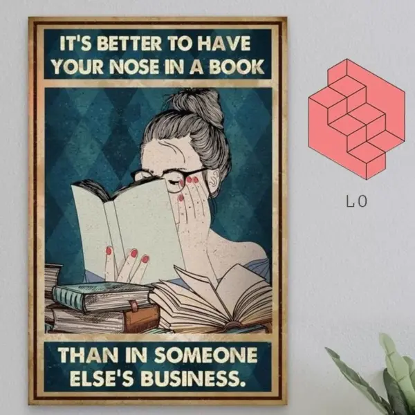 It S Better To Have Your Nose In A Book Poster Canvas Vintage Book Lover Poster Book Lovers Gift Book Poster Girl Book Bookworm Gift
