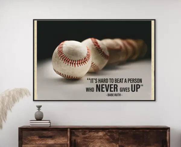 It S Hard To Beat A Person Who Never Give Up Poster Motivational Decor Baseball Poster Never Gives Up Baseball Gift Baseball Photo