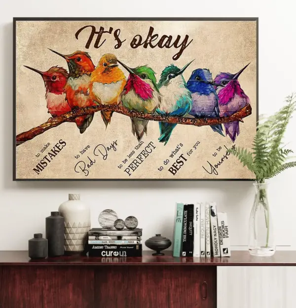 It S Okay Poster To Make Mistake To Be Yourself Hummingbirds Vintage Poster Mental Health Awareness Poster Therapy Counseling Poster