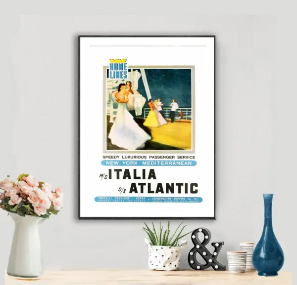 Italia Atlantic Vintage Travel Poster Poster Paper Sticker Or Canvas Print Gift Idea