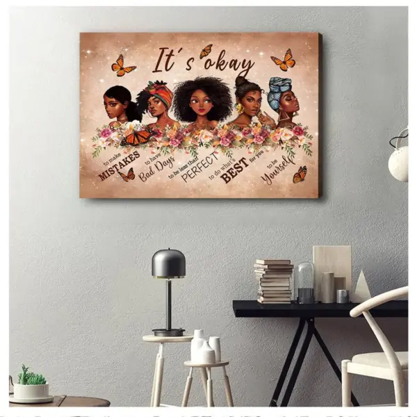 Its Okay Black Woman Portrait Poster Canvas Afro Women Art African American Women Black Women Pride Beautiful Black Queen Poster Canvas
