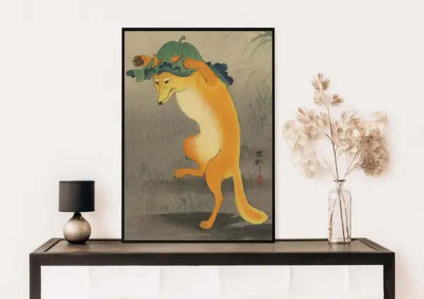 Japanese Art Print Dancing Fox With Lotus Leaf Hat Ohara Koson Print Japanese Print Animal Print Wall Art Poster Print S
