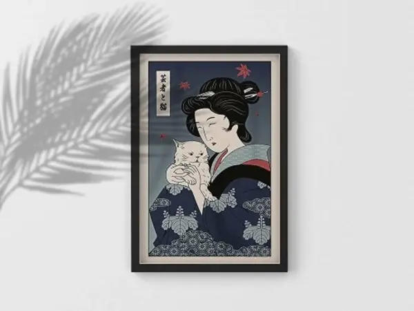 Japanese Cat Poster Japanese Girl And Cat Poster Funny Cat Print Japanese Art Vintage Poster Signs For Home