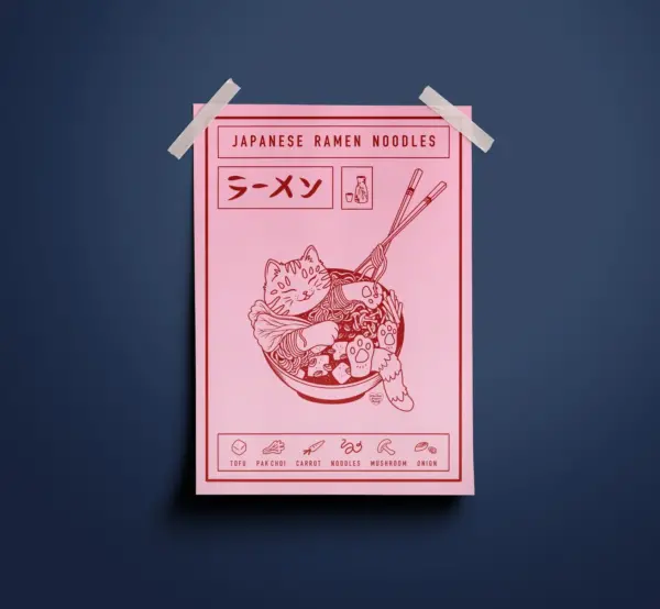 Maneki Neko Ramen Cat Art Print - Unique Gift for Cat Lovers