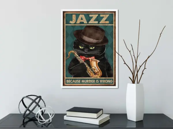 Jazz Because Murder Is Wrong Poster Black Cat Poster Canvas Art Cat Print Art Funny Black Cat Print Vintage Poster Signs For Home